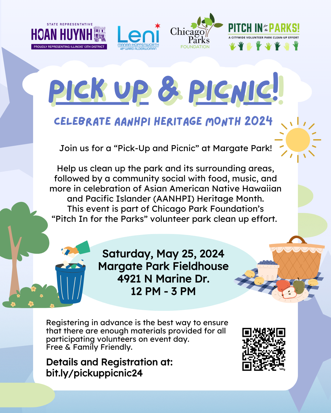 Join us, Rep. Hoan Huynh, and the Chicago Parks Foundation to pick up litter, support park green spaces, and participate in a celebratory picnic! Argyle Street has historic significance to Asian communities in Uptown, and this event is important to making the area safer, cleaner, and more enjoyable for everyone. The event is free & family friendly, and complimentary clean-up supplies will be provided.