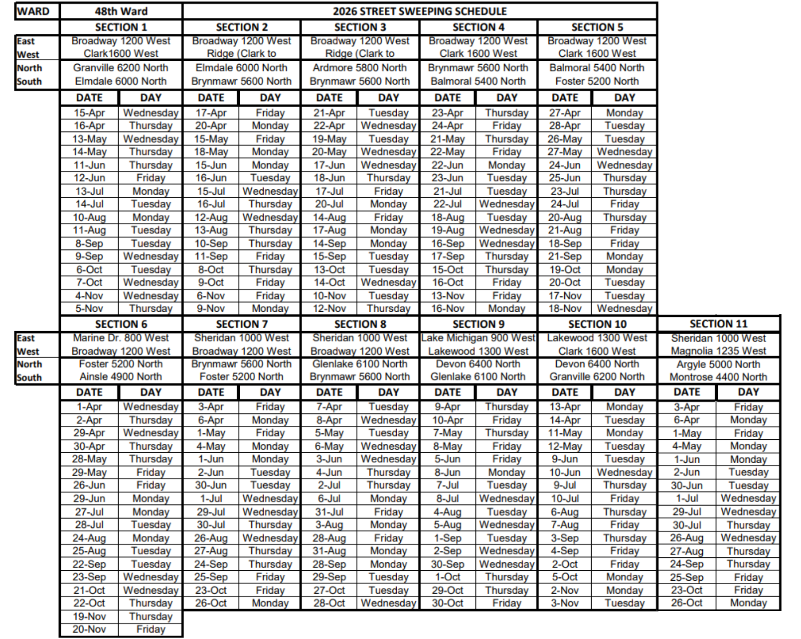 48th Ward 2026 Street Sweeping Schedule